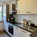 - ❓Une cuisine est-elle disponible à l'appartement Moderne 3 Zimmer Whg Zentrumsnaehe 5 Personen pour les clients ?Oui, l'appartement Moderne 3 Zimmer Whg Zentrumsnaehe 5 Personen est équipé d'une cuisine complète et propose également une bouilloire électrique, un réfrigérateur et de la verrerie.